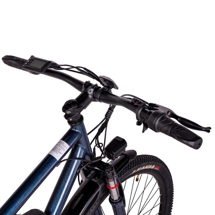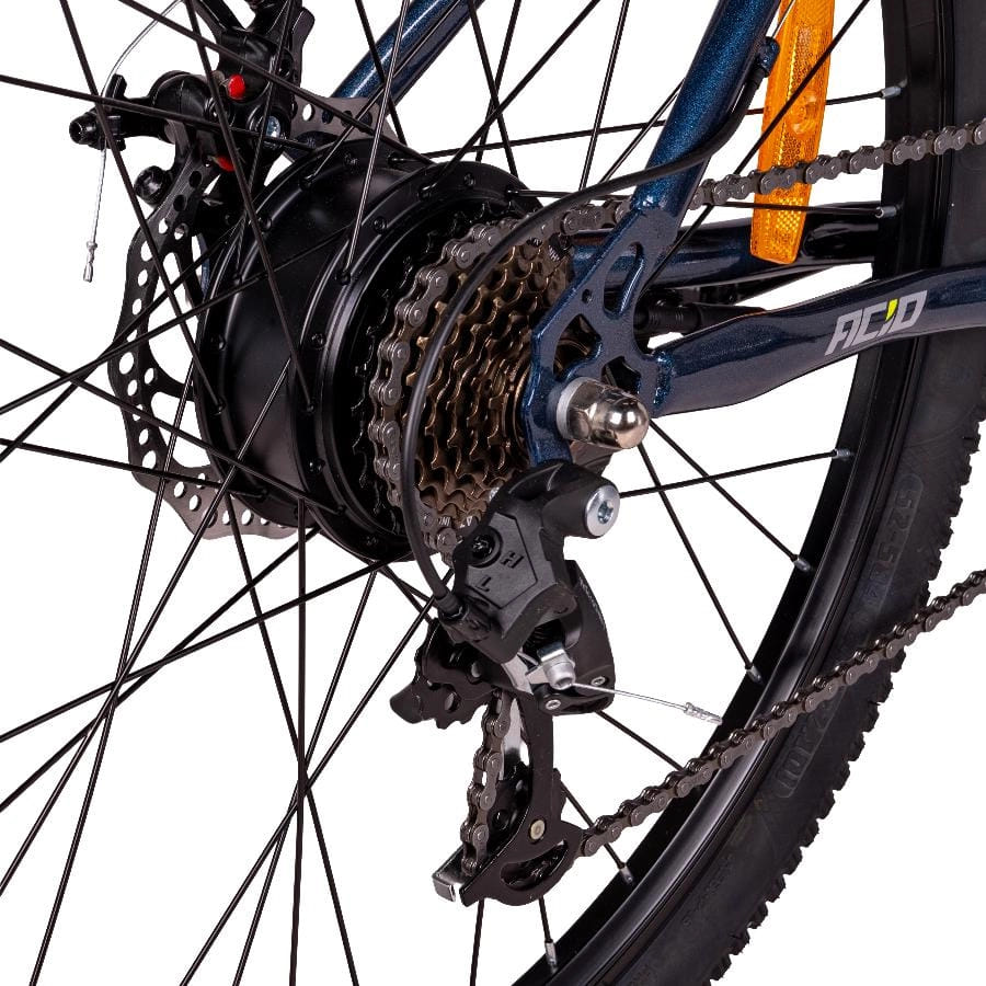 Мотор 250W питается от аккумулятора 36V/10Ah — связка рабочая и проверенная. Заряда хватает на полноценный городской маршрут, а экономичность привода означает, что не придётся искать розетку каждый день. Семь передач Microshift переключаются чётко, без рывков: подбираешь нужную под рельеф и едешь в своём темпе.