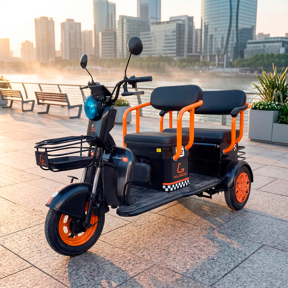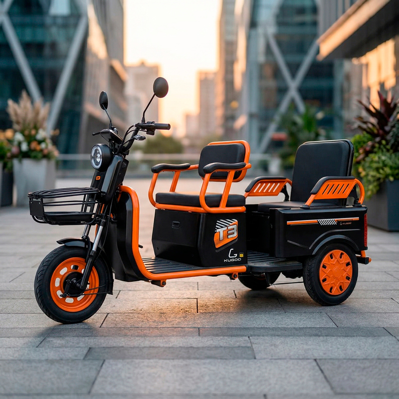 Это легкий, маневренный транспорт, созданный с акцентом на эргономику. Взрослые трициклы отличаются низкой рамой, через которую легко перекинуть ногу, широким комфортным сиденьем со спинкой и вместительными корзинами. Отличным примером служит модель Kugoo T1 — стильный и надежный помощник на каждый день.